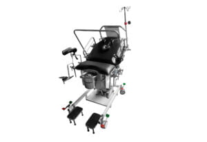 - De gran flexibilidad para aliviar el dolor de la paciente y puede colocar en las posiciones más adecuadas para el parto. Cuenta con barandas en acero inoxidable.